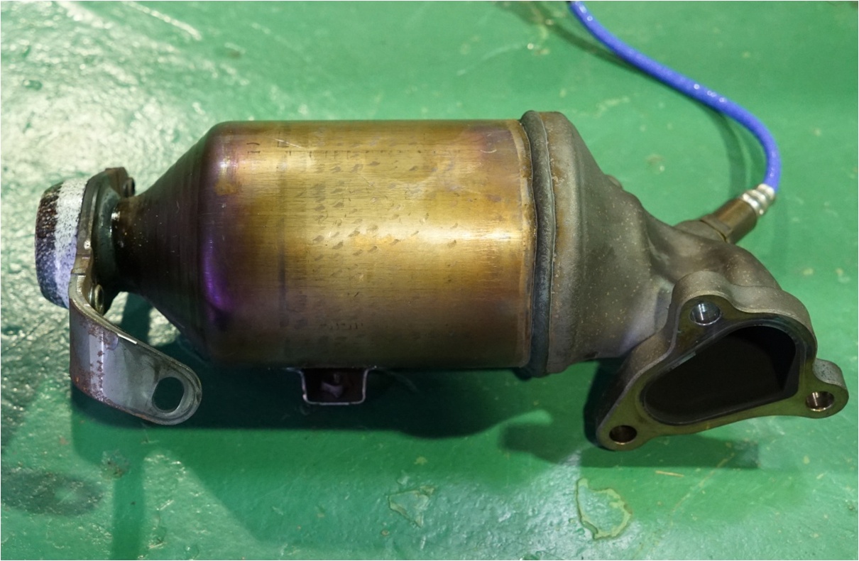 ※三元触媒:触媒は、化学反応においてそのもの自身は変化しないが、反応速度を変化させる物質でパラジウム系、パラジウム-ロジウム系、プラチナ-ロジウム系などがある。コンバーター内で一酸化炭素(CO)、炭化水素(HC)、窒素酸化物(NOx)を二酸化炭素(CO2)、水( H2O)、窒素(N2)に浄化する。