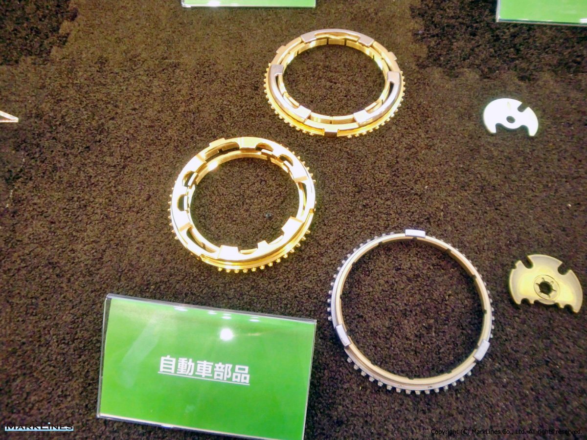 シンクロナイザーリングという黄銅製の摩擦クラッチを使用して、変速ギアとスリーブ間に配置し、回転数を同期する。軽くあてるだけでスリーブの回転を同調させ変速ショックを緩和する。